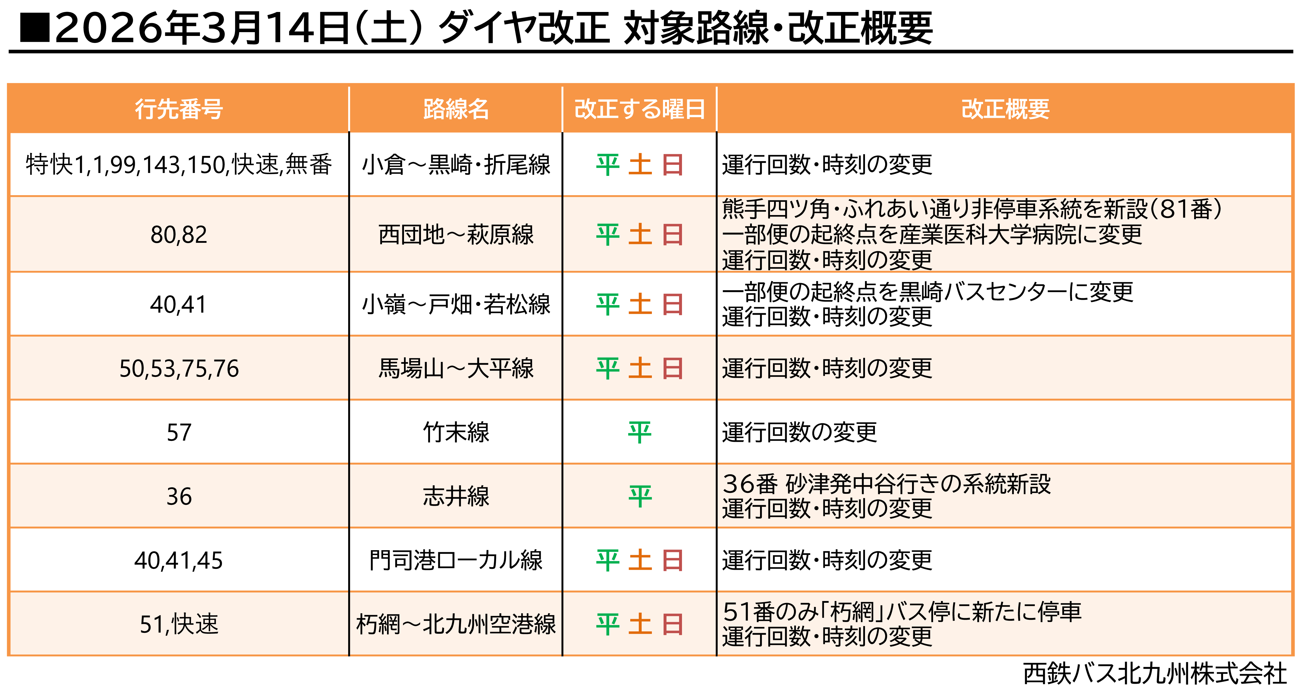 ・一部便の起終点を黒崎バスセンターに変更(下記系統を新設)します。