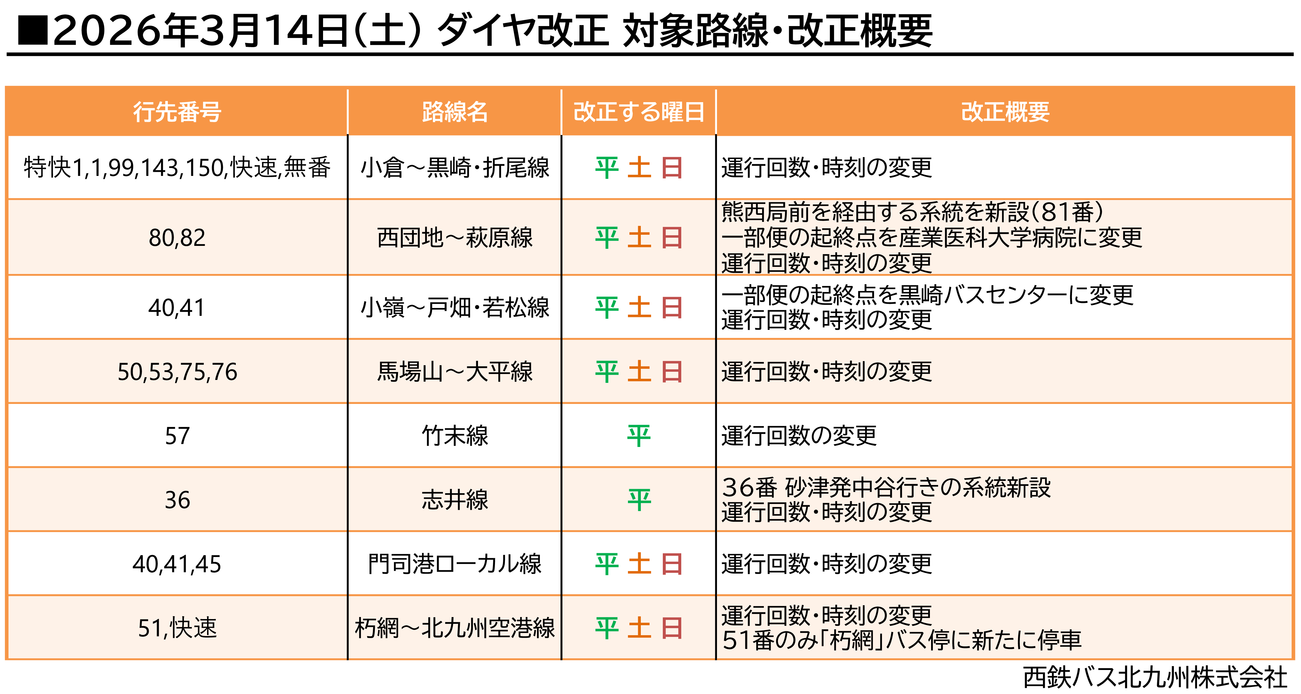 北九州マラソン2026_運休・迂回関係路線一覧