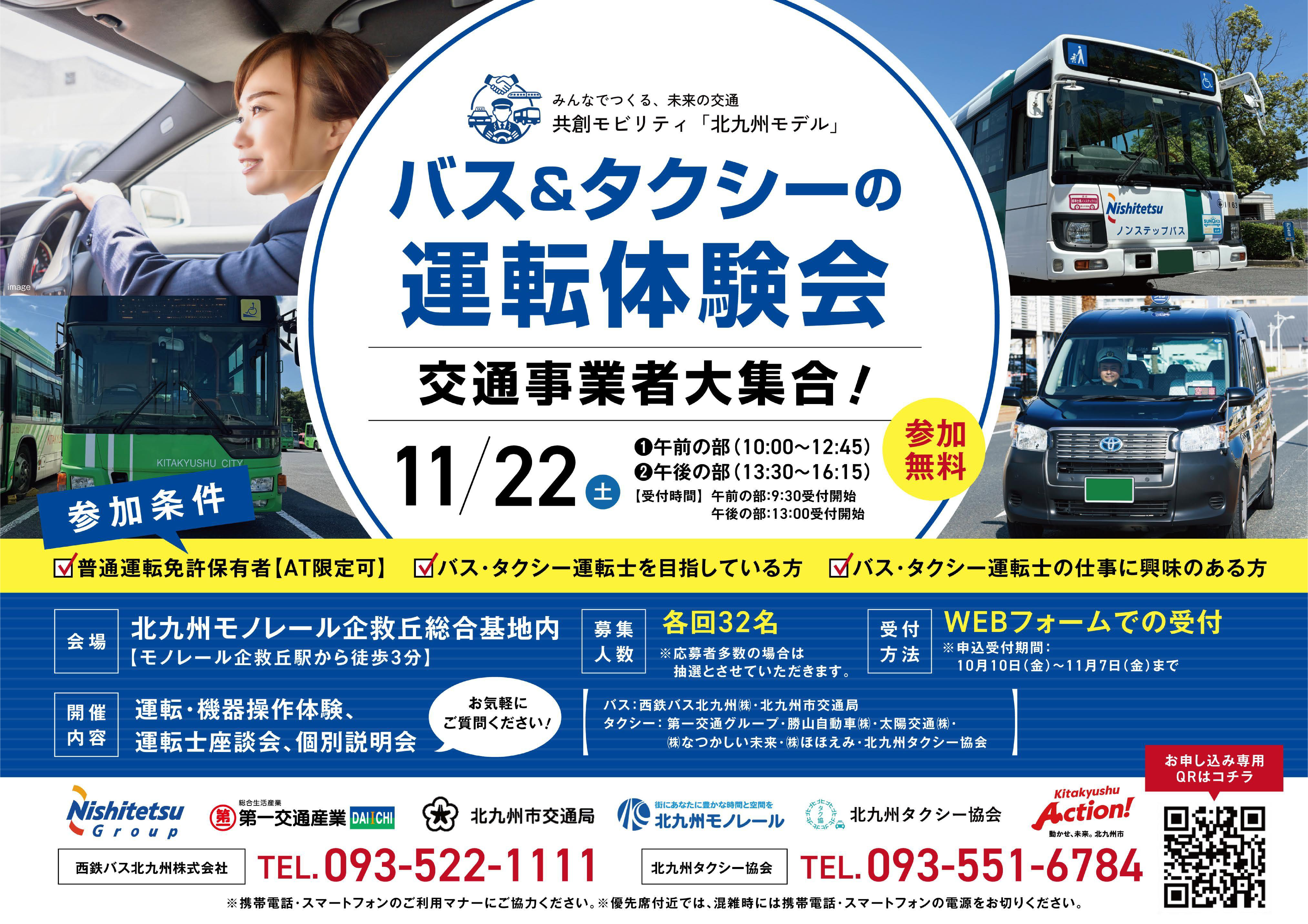 バスの運転体験・会社説明会について:093-522-1111(西鉄バス北九州㈱ 総務部)