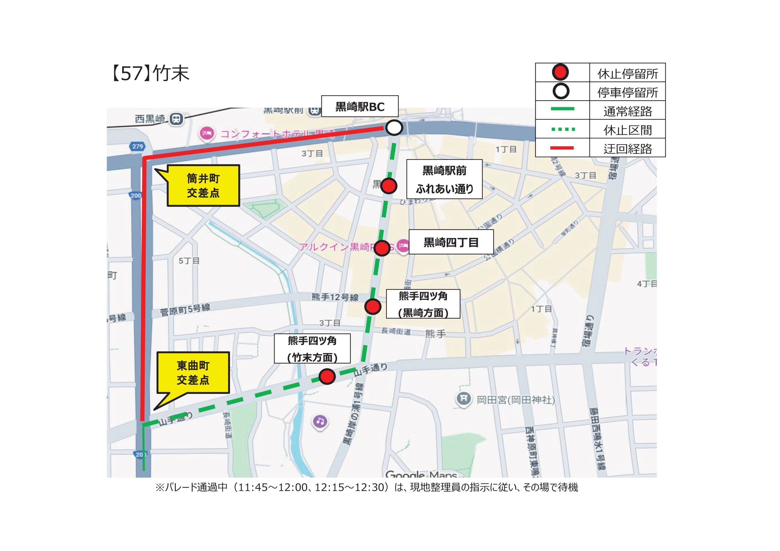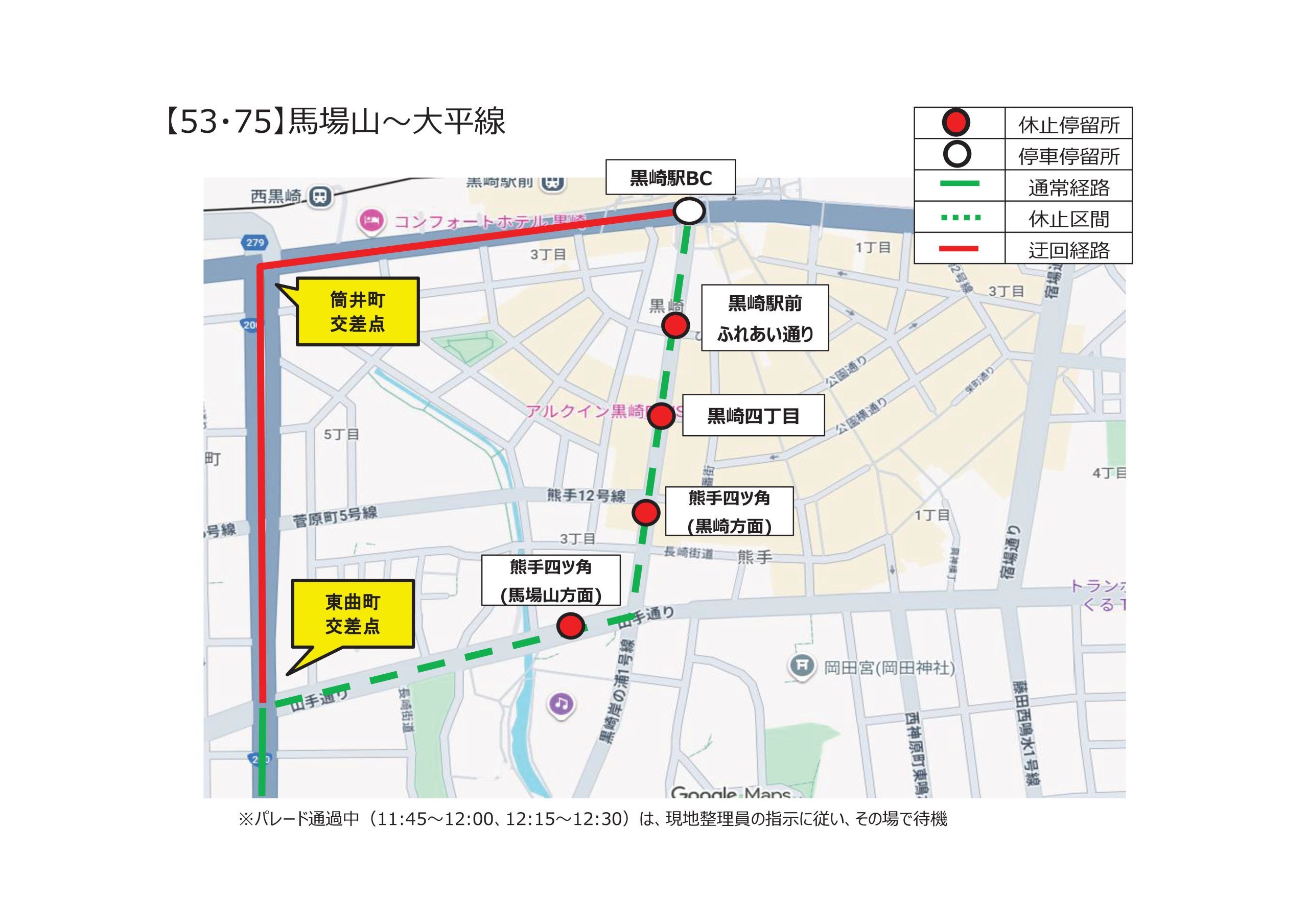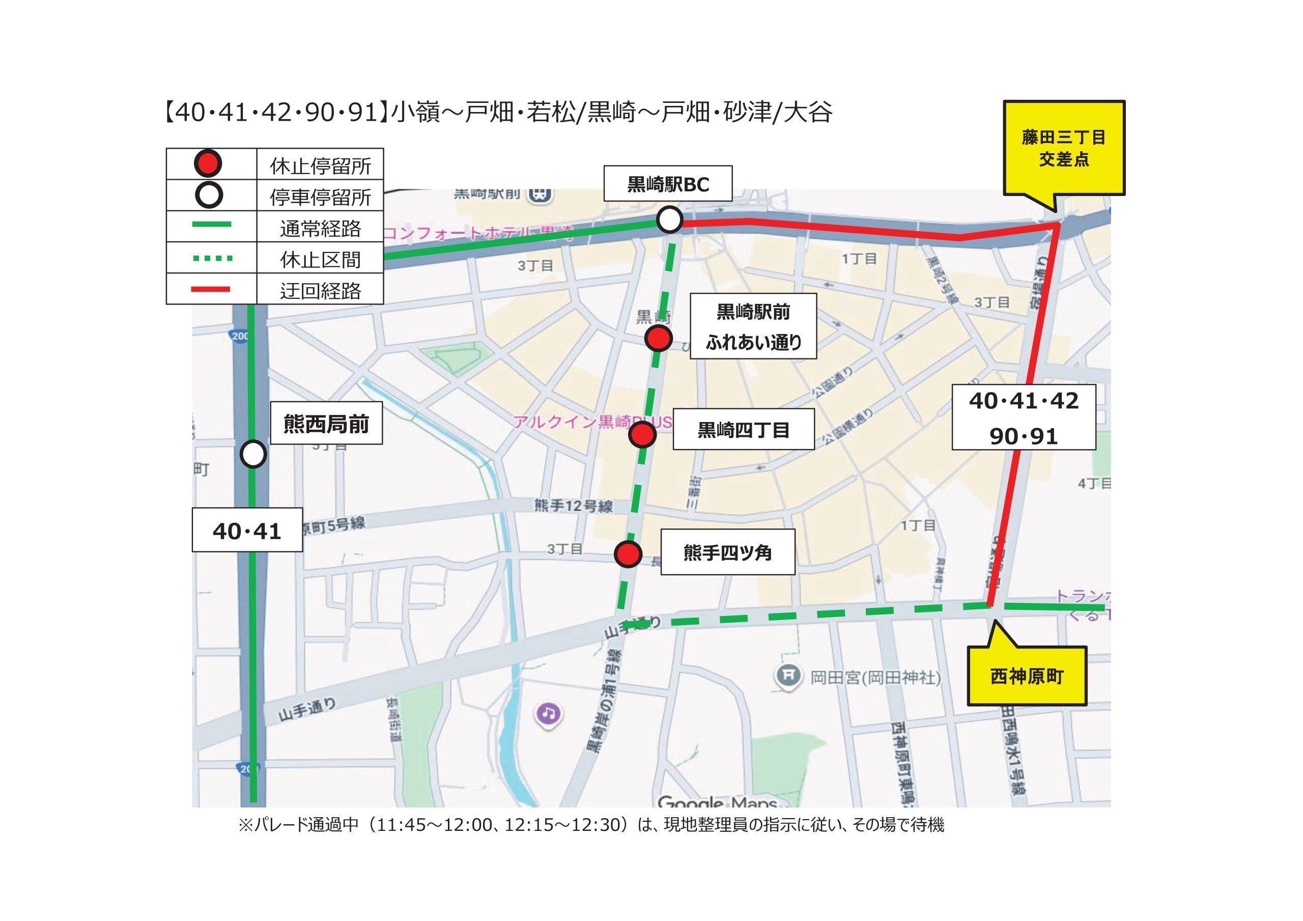 「クロサキスイッチ」イベントの開催に伴い、下記の通り迂回運行を行います。