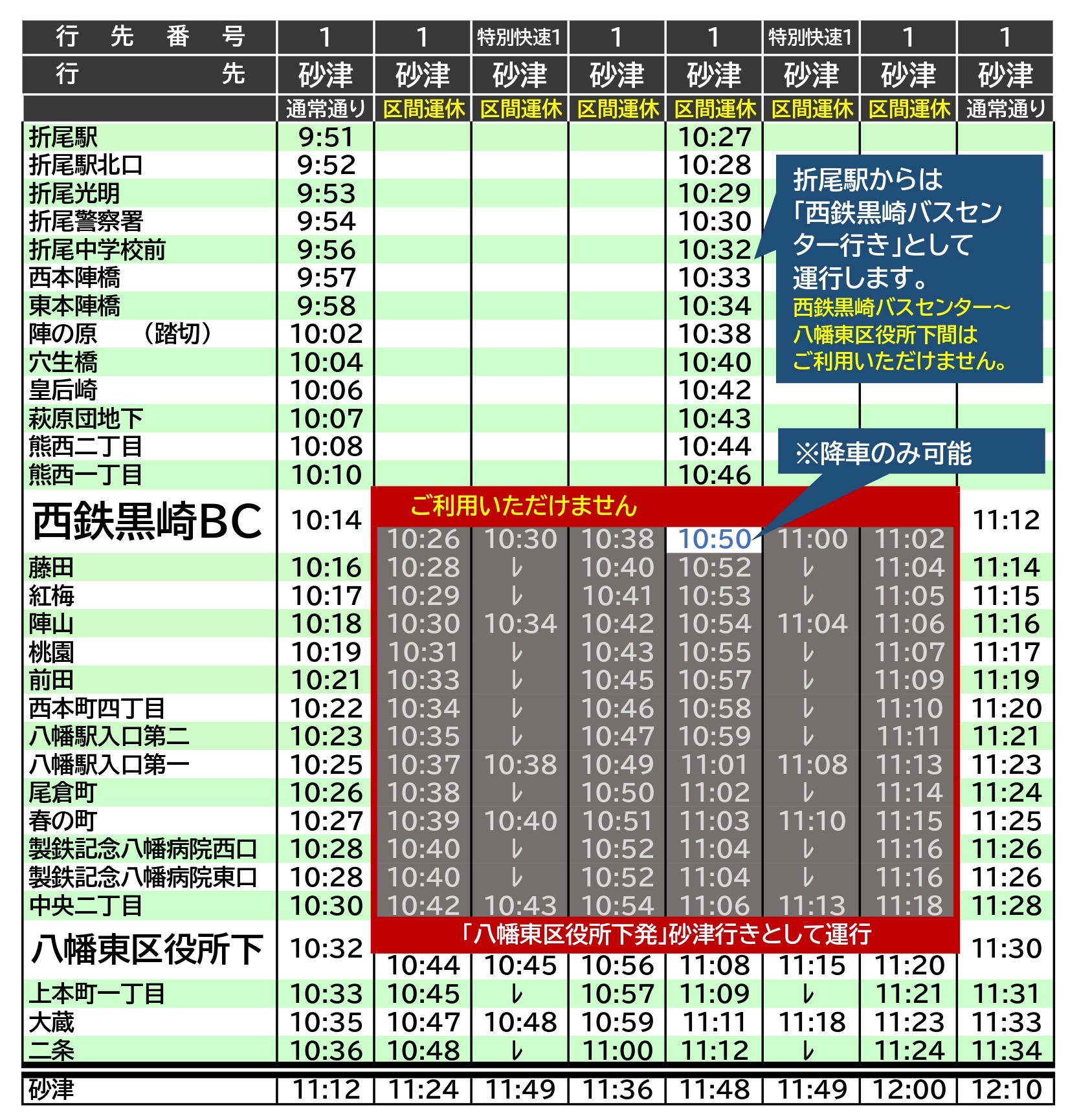 ・下記対象便は区間運休(西鉄黒崎バスセンター~八幡東区役所下)